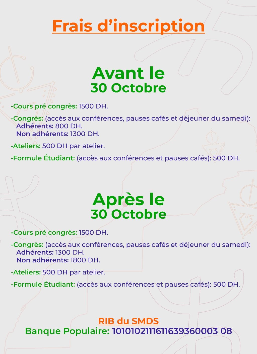 - Non adhérents : 1300 dh.