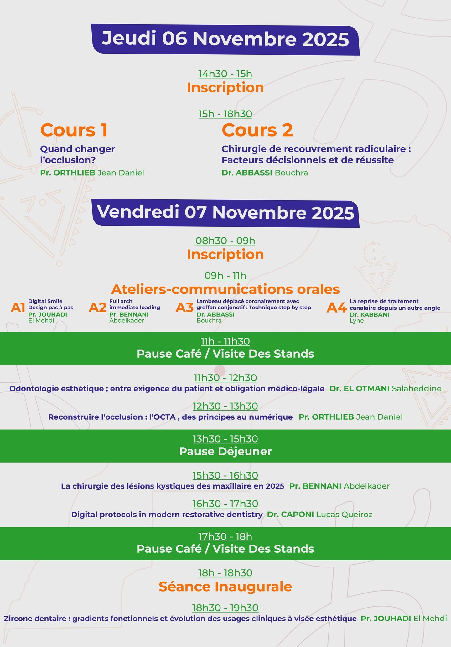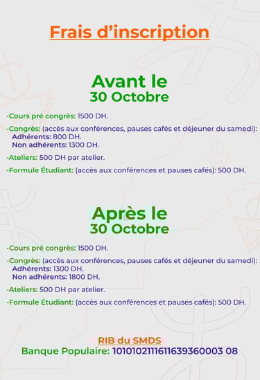 Cours pré congrès : 1500 dh.